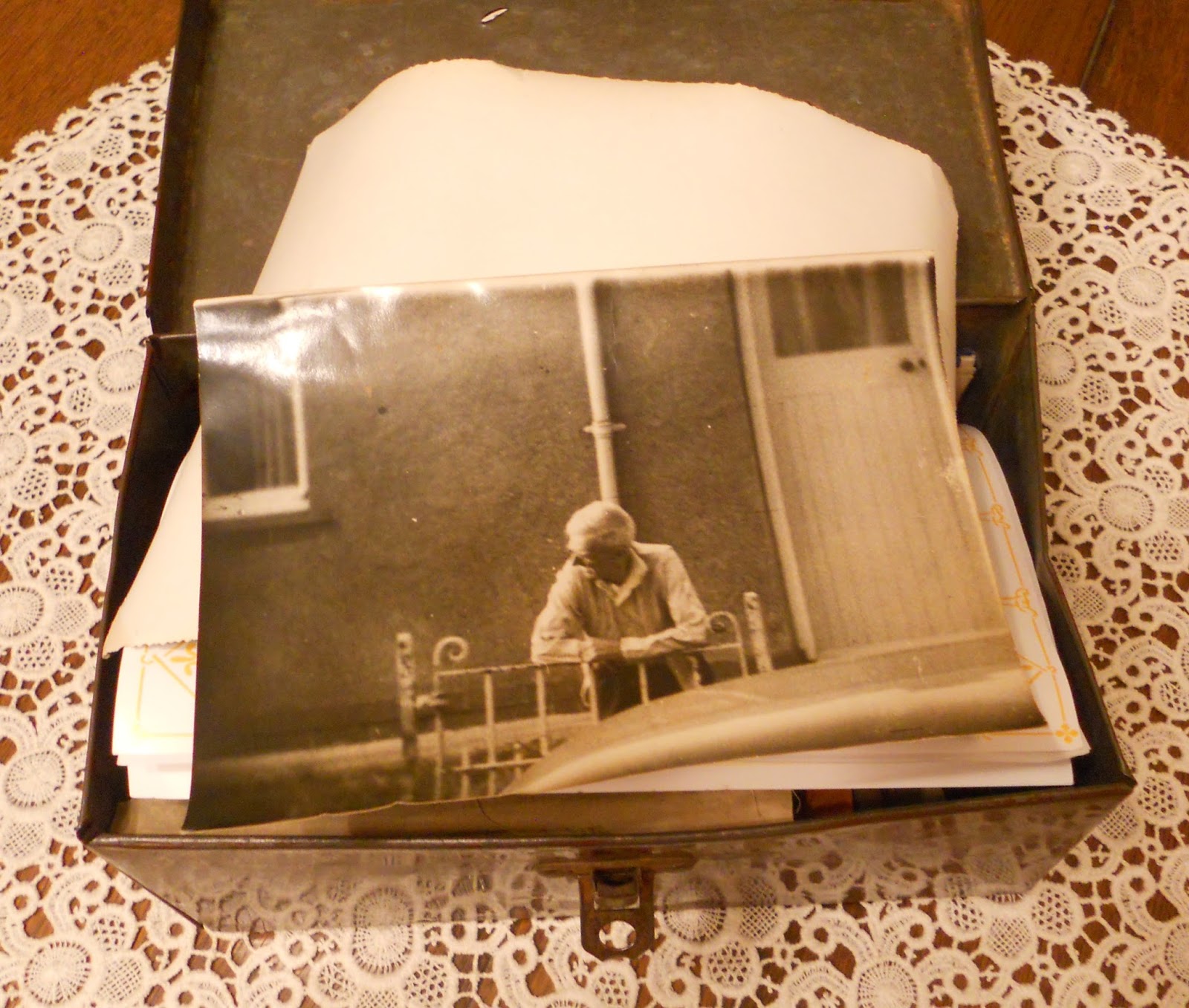 Granny's box, that now holds photos, a small Welsh bible and newspaper clippings, was the tin box my D'cu (Grandfather) took to work with him when he was a Doubler in the Tinplate Works in Llanelli, pre and post WWII. One of the men who bent, or doubled, sheets of hot rolled iron or steel bars in half with a large set of tongs before they were rolled again, maybe three or four times, and subsequently coated with tin. I remember that he always wore his belt buckle fastened towards the back, a legacy from those years to avoid catching the handles of the tongs in a front fastened one and a mishandled sheet slicing through flesh.