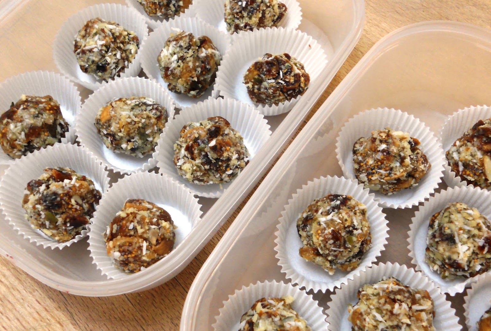 They sound very worthy, I know. All natural and raw ingredients. Full of slow-release energy (good for runners). But they don't taste worthy. They taste like a treat. Even if you're not a big fan of figs and dates. The coconut and vanilla essence have a transforming effect. Sweet and delicious. And not a single fashionable ingredient. Come to think of it, that's probably why I ignored the spirulina in the first place. Enjoy.
