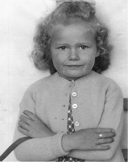 How can I not love her: that open gaze, the contentment of her small smile, her shiny buttons, her curly hair ribboned in the way she requested each morning - ‘two curls up’ - after my mother had teased out the overnight tangles with a large, pink, Betterware comb.