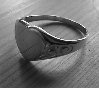 You see that signet ring? I am wearing it now, 61 years later, after finding it last year in an old jewellery box studded with seashells, the silver band split from years of growth, after a silversmith repaired it for me. I cannot see the join.
