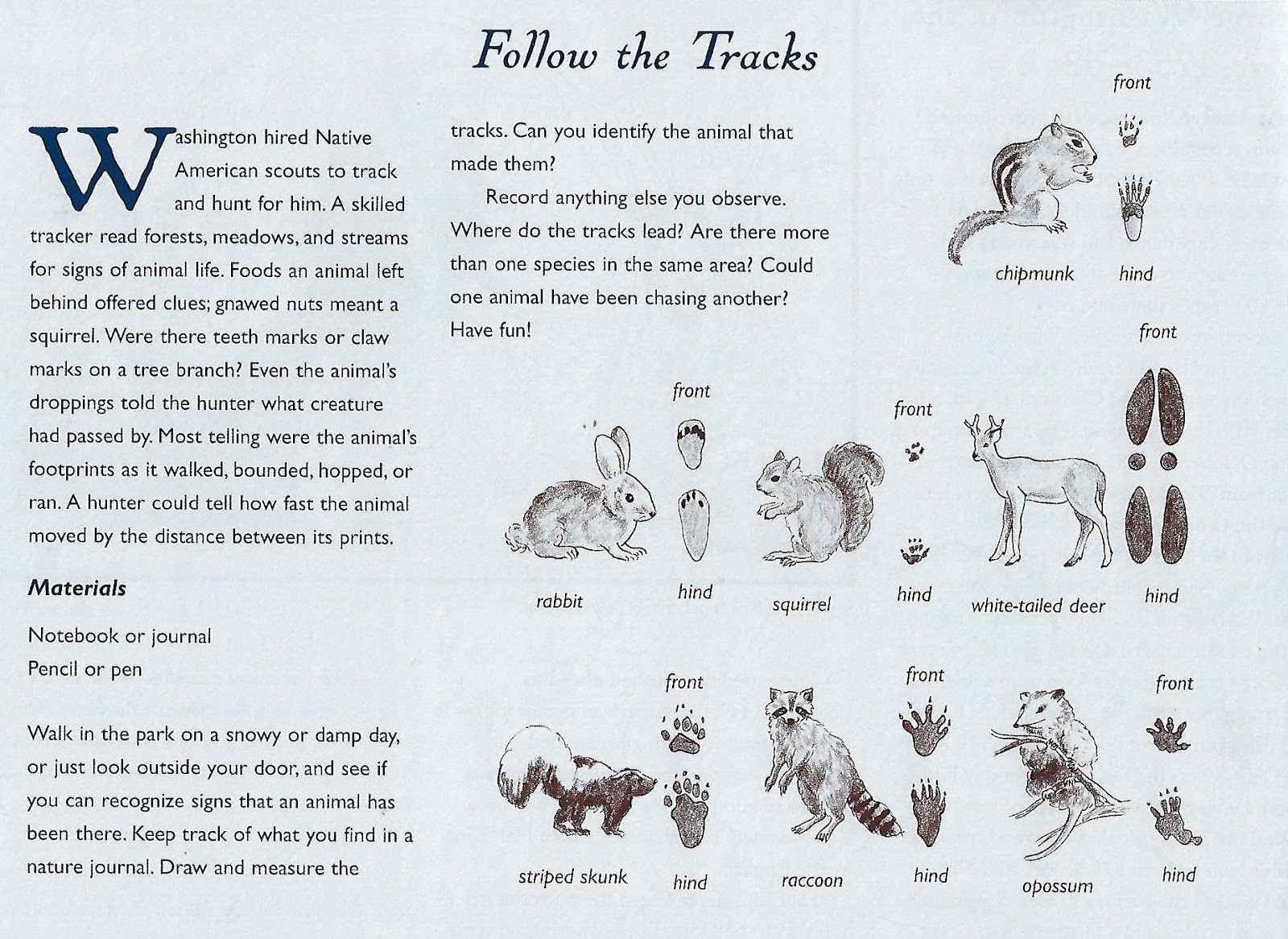 You can find books at your local library and charts online that show different animal tracks. But you can get started with the activity below. Happy tracking!