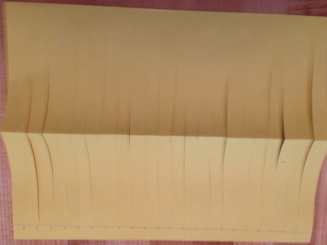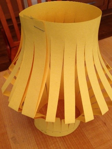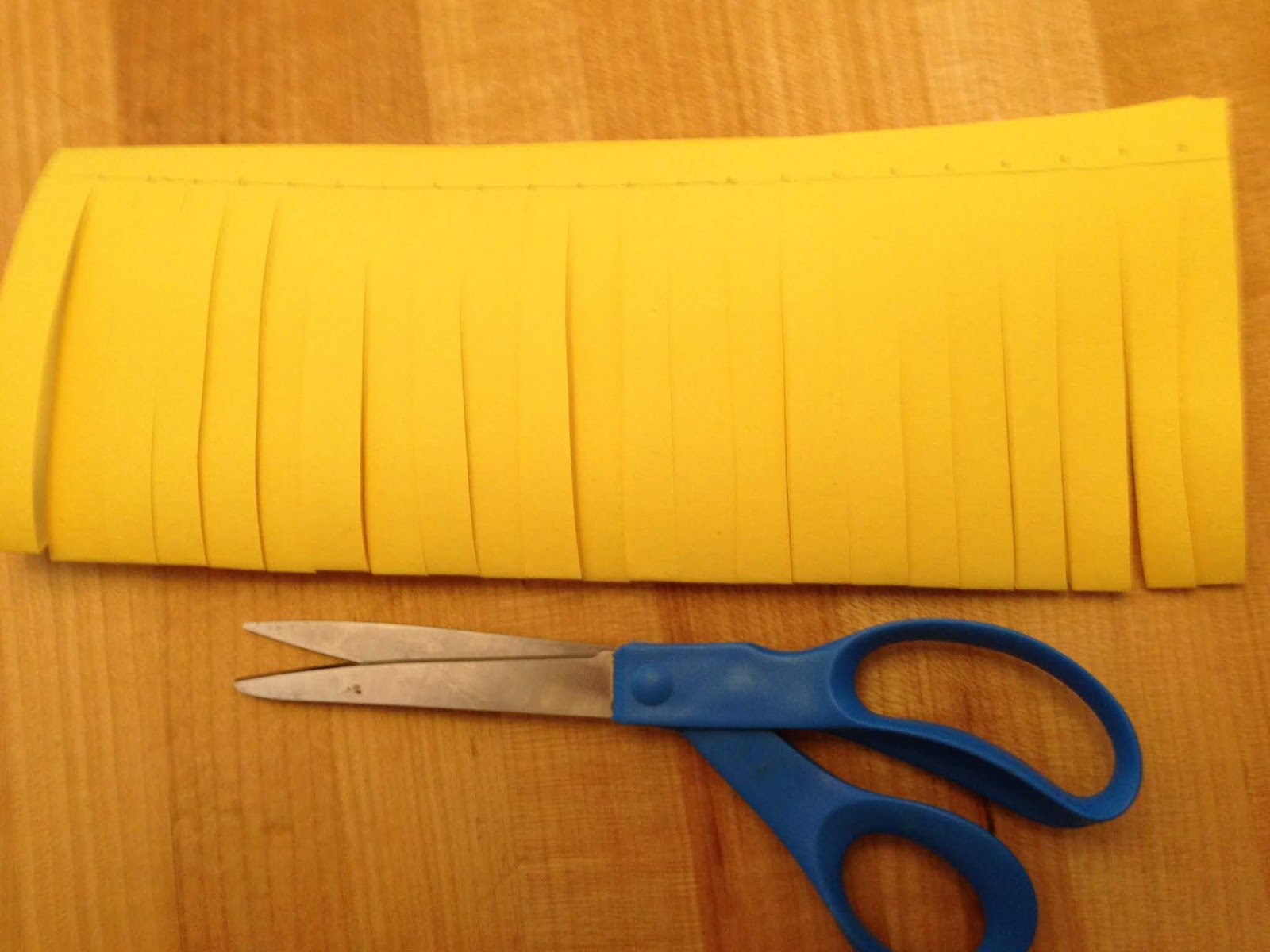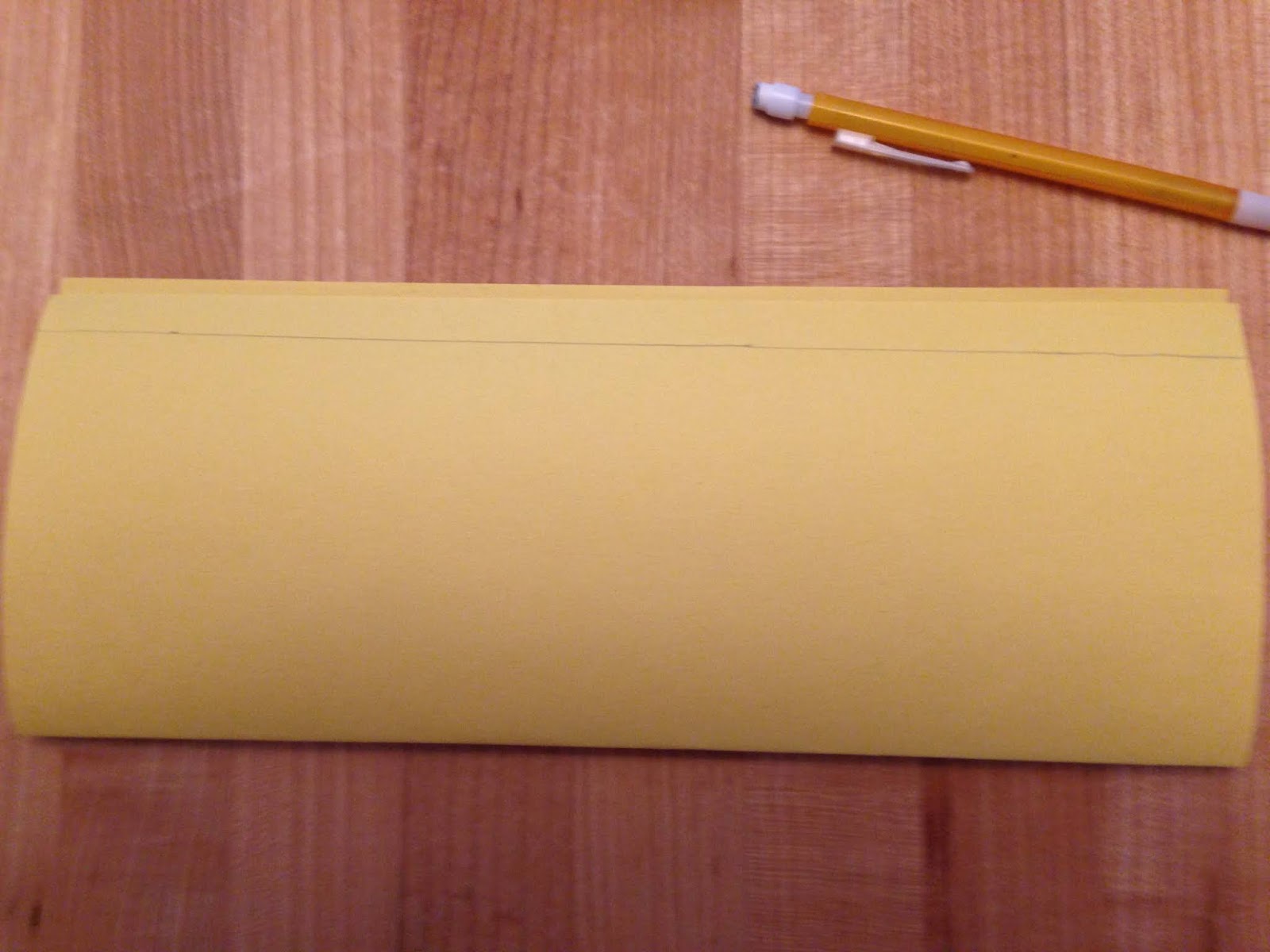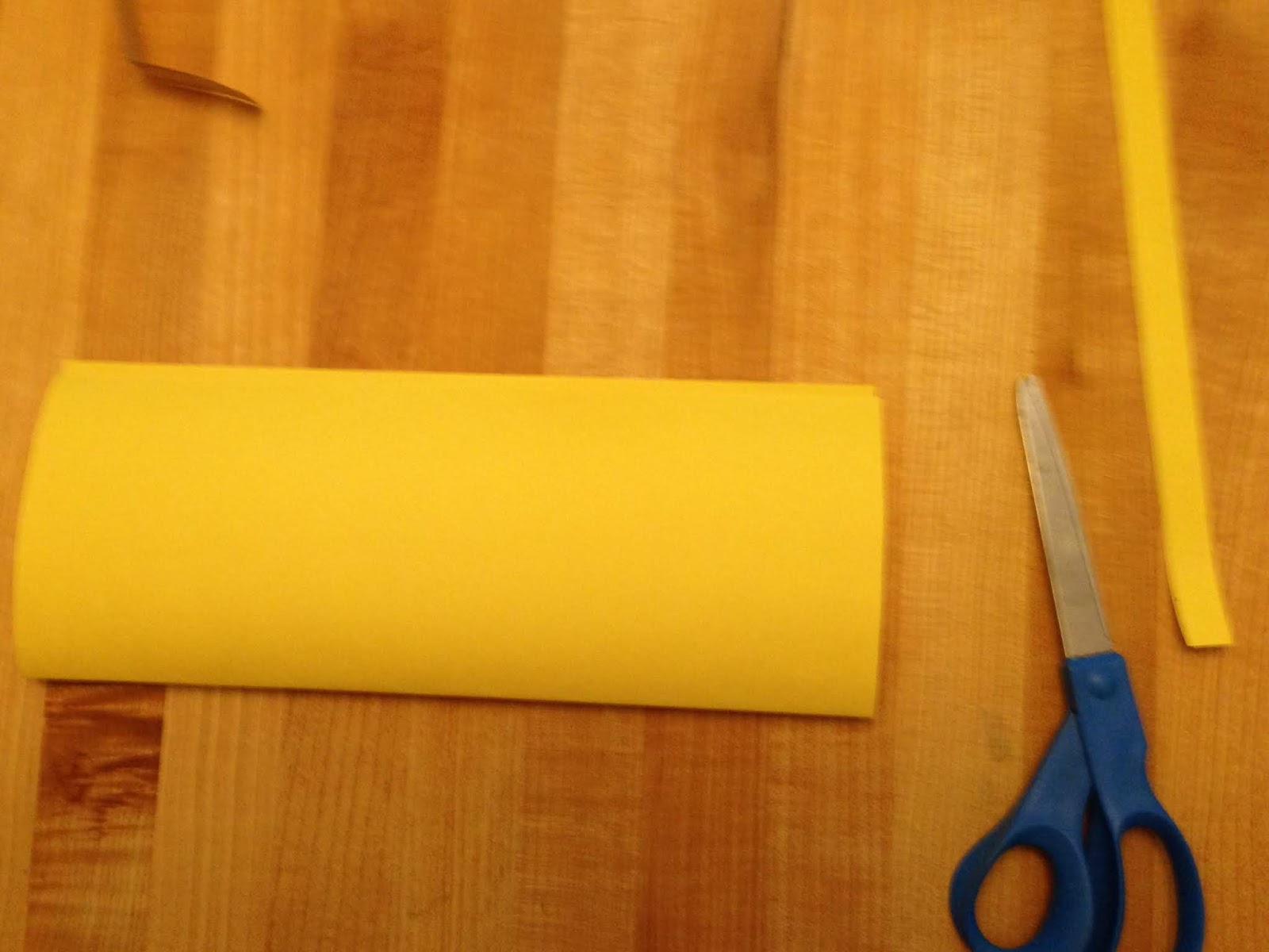 What to do:1. Cut a strip of paper ½ inch wide from the short end.2. Fold the remaining paper in half lengthwise.3. With your pencil, mark a line ½ inch from the open edge.4. Mark ½ inch marks along this line.5. Cut the lines from the folded edge through both layers.6. Open paper and roll to form a cylinder.7. Tape or staple the edges at the top, middle, and bottom8. Add the handle. And the candle!
