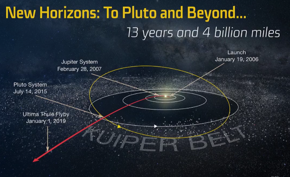 After accomplishing its nearly ten-year journey to the Pluto system where it rewrote the book on the icy dwarf planet and its five moons, New Horizons headed toward the small Kuiper Belt object. The speedy grand-piano-sized robotic probe will reach Ultima Thule late this month on New Year's Eve. It will be the farthest planetary exploration by a spacecraft ever! The KBO is an astounding 4 billion miles from the Sun.