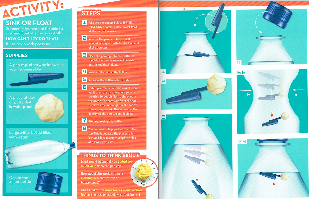 Did you succeed? Did both of your experiments work? Which one did you like more?Challenge: If you’re looking for more ways to decide, I challenge you to design your own space suit OR underwater suit. What would it look like? What tools would it have? Draw it and compare with your friend.