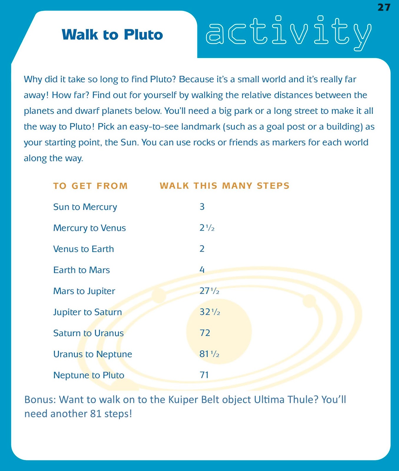 There are tons of great resources for educators on the New Horizons website, including activities for K-12, a 3D model printing file, and a fun-to-make one-twentififth scale paper model that's available as a printable PDF.(You'll need the instructions, too.)Watch these web and social media sites for more, including live links during the flyby event:Facebook www.facebook.com/new.horizons1/Twitter @NASANewHorizons #UltimaThule #UltimaFlybyNASA www.nasa.gov/mission_pages/newhorizonsNew Horizons pluto.jhuapl.eduAlso, here is an annotated activity to help students comprehend just how far away Ultima Thule is. It's from my book Exploring the Solar System . Go New Horizons, go!
