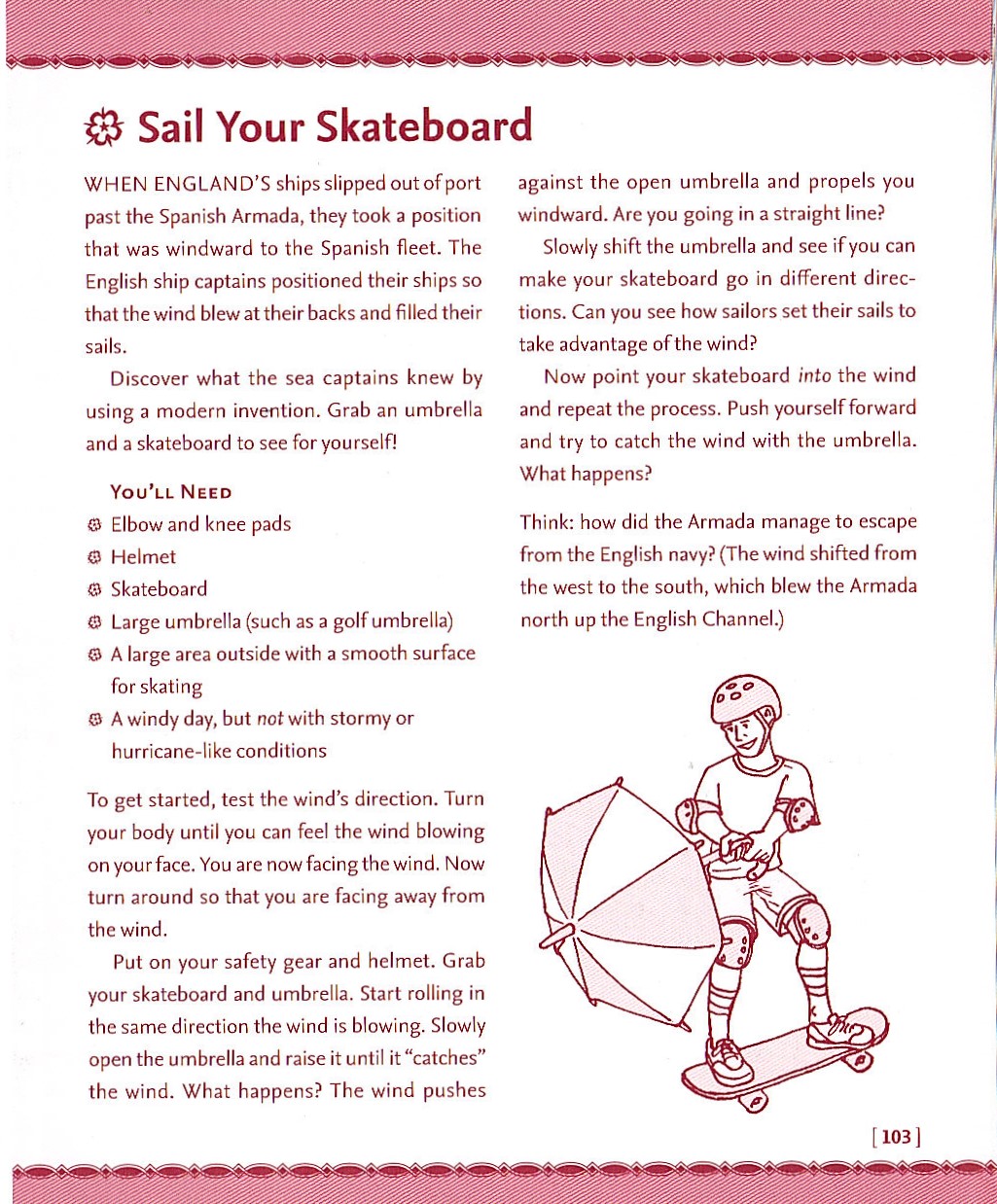 Thinking about the Armada led to this blog post. See what you can do with an umbrella when the wind picks up. From Elizabeth I: the People’s Queen, "Sail Your Skateboard” (and learn a bit about the Spanish Armada.)
