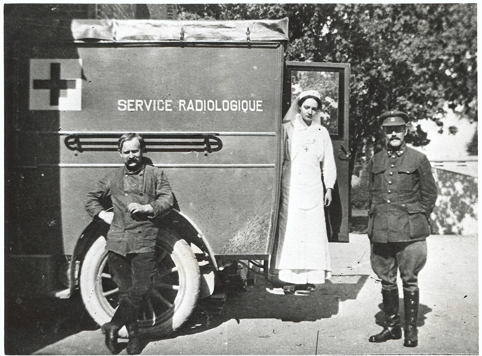 Irène Curie,daughter of the groundbreaking physicist Marie Curie, served as an x-ray technician along the Western Front, driving her “petite Curie” vehicle with portable x-ray equipment to diagnose soldiers’ injuries. Still in her teens, she confronted both the French Army and its doctors in order to carry out her work.