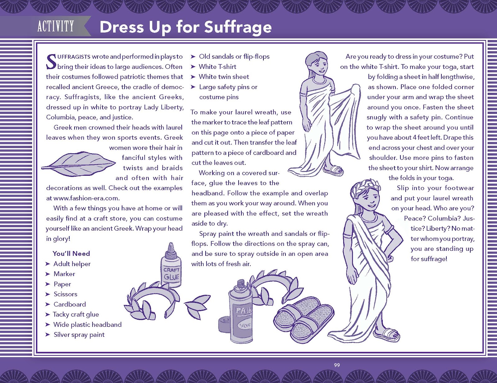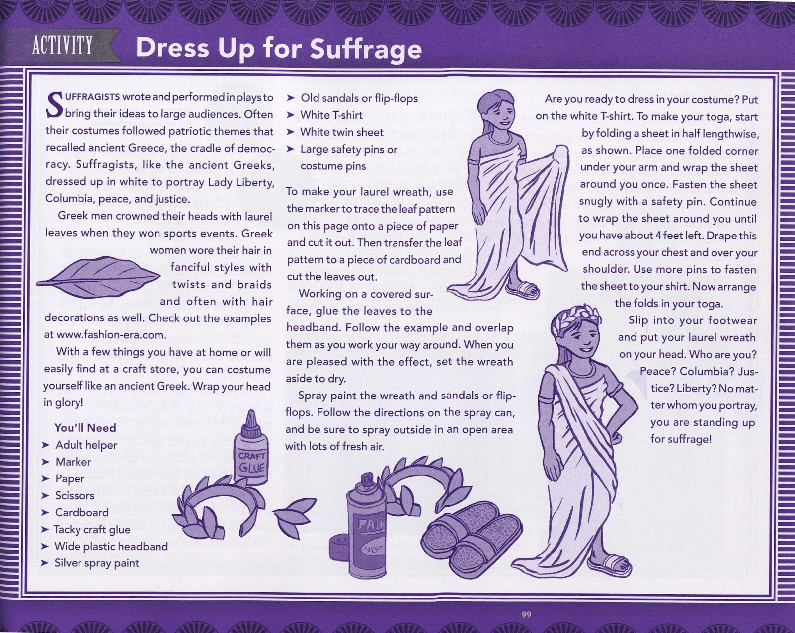 From Rightfully Ours: How Women Won the Vote, comes this learning activity: Dress Up For Women’s Suffrage! Or like an Olympian. Men wear togas, too.