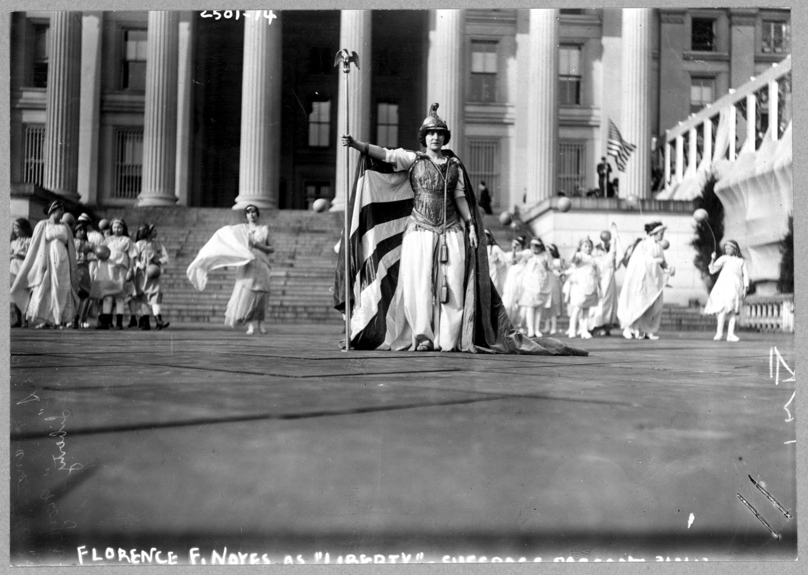 Suffragists did indeed dress up like Greek goddesses when they staged a “tableau” on the Treasury Department steps. And I assure you that the little girl who served as my student helper thought it was pretty cool -- she was all excited about making the laurel wreath.