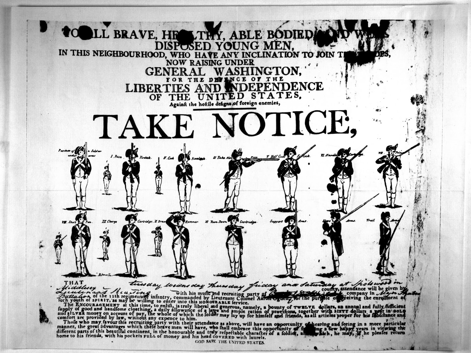Washington always needed more soldiers. A recruiting poster.Library of Congress.