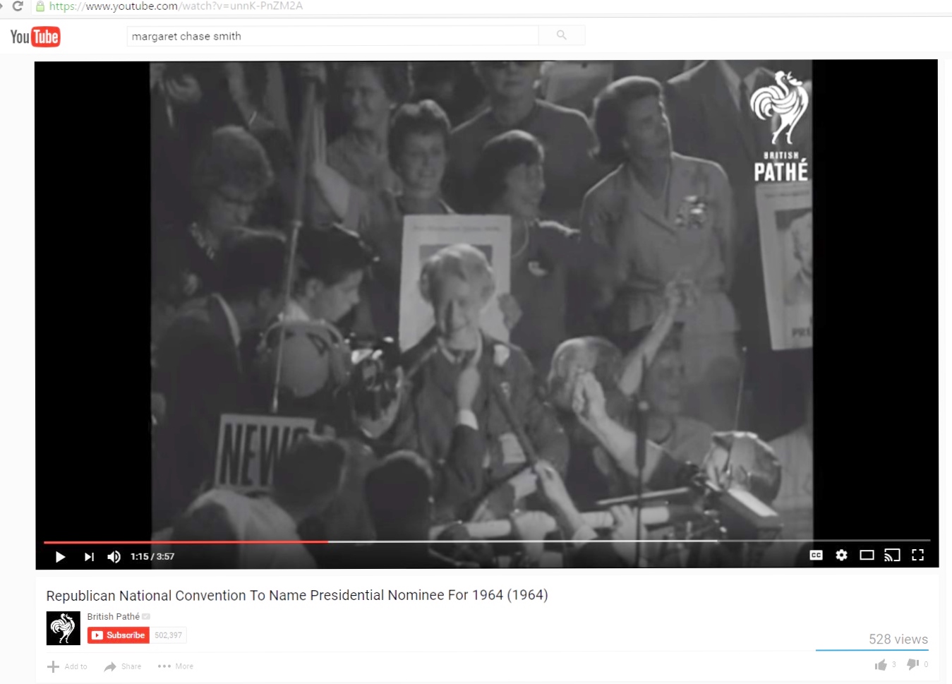 The name that rings in my mind is Margaret Chase Smith, Republican senator of Maine, who was nominated at the Republican Convention at San Francisco’s Cow Palace in 1964. US Senator Barry Goldwater of Arizona, a right wing Republican, won the nomination.