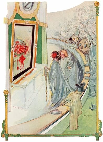 The climax reveals another side of the Oz ethos, pacifism, as Ozma refuses to fight the evil forces invading her country. Instead, death enters from an oblique source (the waters of Lethe, I think, must be connected to the Emerald City’s Forbidden Fountain) and reveals its salvific side. And though in his conclusion, Baum tried to make Oz as inaccessible as death’s undiscovered country, the doors would soon be opened again. I’m very glad they were, for there was still much more amusement and adventure to come.