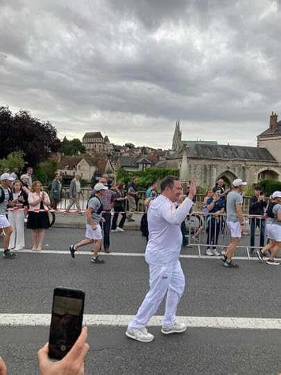 This year I had the particular pleasure of getting to see the Olympic Torch while I was on a visit to Chartres, France. It just happened to be passed from one bearer to another right in front of the apartment building where I was staying!