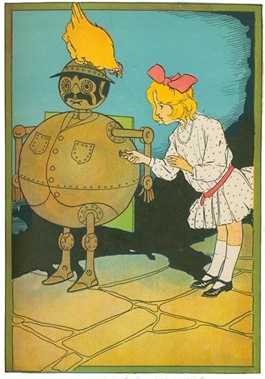 So far in the series, there have been a number of characters brought to life from inanimate form (notably the Scarecrow and the Sawhorse), as well as the Tin Woodman, a person whose body was replaced by metal, but now we encounter a purely mechanized person. Baum was fascinated by gadgetry and technology, by the rise of the science that now is confronting us with the challenge of artificial intelligence. Reflecting Baum’s optimism about scientific progress, Tik-tok is a benign character, who serves Dorothy faithfully and well. But though he can act, speak, and think, he has no inner life, and thus no morality. He can only play out the program he’s been given, including any mistakes in it (and one of those mistakes leads to dire consequences later.)