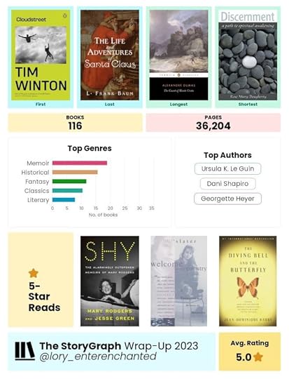The January Reading Challenge, which has a prize draw for those who read at least 1 page every day in the first month of the year. I completed this, but didn’t win. Better luck this year!The Read the World Challenge, which has prompts for reading books from various countries — I completed only half of the prompts, but it did get me to read books from a couple of countries I might not have otherwise (Argentina, Trinidad). I’m signing up again this year.The StoryGraph Onboarding Challenge, which has 6 prompts that encourage using StoryGraph features like Recommendations and Readalongs. I completed 5 out of 6 and it did help me to find some interesting reads. Haven by Emma Donoghue, for example, fit the category “A book published in the last three years that fits your reader profile.” I’ll do this again as well.Last year, I created a page for my own Spiritual Memoir Challenge, and a few people signed up, though I don’t know if they carried through. This year, I’ve set up a Challenge page for Book’d Out’s Nonfiction Reader Challenge (since there wasn’t one already), and one for the Ozathon. I’ve also set up a Readalong page for the January Oz book, and if anybody makes use of this, I’ll keep doing it for the rest of the series.