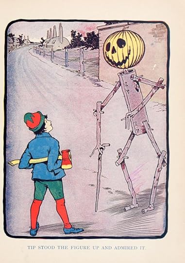 Male characters also play an important role, but the values they embody are often also different from those of the usual masculine culture. In this book, for example, Tip creates a wooden figure with a jack-o-lantern head to scare his cruel foster mother, the witch Mombi. Although it is Mombi who animates Jack Pumpkinhead with a magic powder, he hails Tip as his parent; Tip has given him birth, in effect.