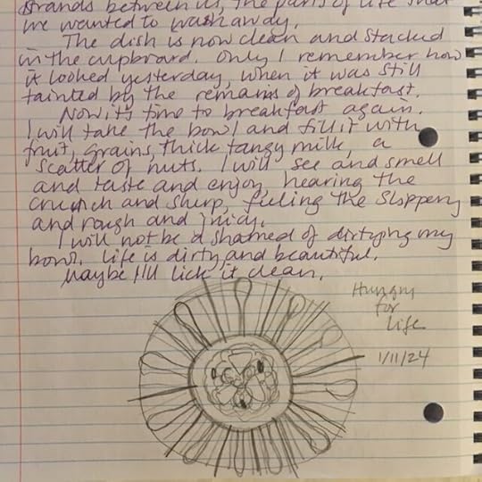 Writing more and submitting more for publication is a goal of mine this year. I’ve started meeting with another writer for some inspiration and support, working through exercises in the book One Year To a Writing Life by Susan Tiberghien. You can see a sample above.