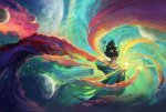 Julie Dillon (born in 1982) is an American artist specializing in science fiction and fantasy art. A freelance illustrator, Dillon has created images for games, book and magazine covers, and covers for musical albums. Dillon’s work has been nominated for the Chesley Award three times; she won the 2010 Chesley Award for Best Unpublished Color for “Planetary Alignment” (subsequently published as a cover for Clarkesworld Magazine), as well as the 2011 Chesley Award for “The Dala Horse” in Best Interior Illustration. She was nominated for the World Fantasy Award for Best Artist in 2012 and received the Hugo Award for Best Professional Artist in 2014, 2015, and 2017. (Wikipedia)