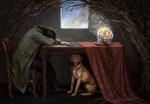 The works of Russian artist Maria Zolotukhina hover at the twilight of consciousness. Her darkly dramatic paintings depict unsettling dreamlike scenes with classical motifs — portraiture, still life, landscape, religious icon — and are full of portent without dipping into horror.