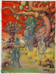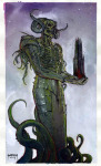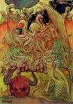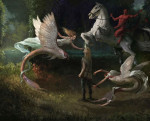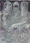 The paintings of Carlos Palma Cruchaga bridge the fantasy of the old world — black sabbaths, angels, ghosts, winged horses — with the new, post-Tolkien worlds of elves, dragons, and high adventure.