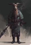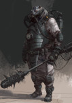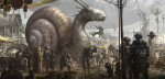 Chinese artist Su Jian imagines grim futures where anthropomorphic animals wander post-collapse Asia and techno-warriors battle robots and demons. Find more the artist on his ArtStation page.