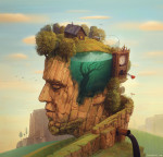 Lithuanian artist Gediminas Pranckevičius makes utterly stunning surreal landscapes of stone minds and impossibly stacked houses, where shadowy sea creatures prowl like phobias inside wall-less seas and we each live inside a house made of self.
