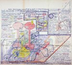 Next are works by Paul Laffoley. Again from Wikipedia: “He attended the progressive Mary Lee Burbank School in Belmont, Massachusetts, where his draftsman’s talent was ridiculed by his abstract expressionist teachers. After attending Boston public schools for a short time, Laffoley matriculated at Brown University, graduating in 1962 with honors in classics, philosophy, and art history. Laffoley has written that he was given eight electroshock treatments after the termination of ‘about a year of weekly sessions with a psychiatrist, who had treated me for a mild state of catatonia’ while at Brown in 1961.