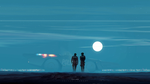 Josh Courlas is a New York-based digital artist who creates mysterious scenes out of an Adventuretime-like noir underworld, a dark video game of idols and edifices before which tiny figures hold lights. Like the work of Dawid Planeta and others, it is a variant of a new genre of art I have written about before: the casual hierophany.