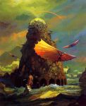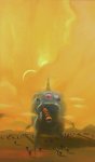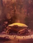 As American publishers came to prefer more realistic art in the 1980s, Lehr focused instead on covers for the sf magazines Analog, Omni, Tomorrow: Speculative Fiction, and Weird Tales as well as covers for foreign publishers. Lehr also worked outside the genre for magazines like Business Week, Fortune, Life, Playboy, The Reader’s Digest, and Time, and he remained active until his death in 1998. [SF Encyclopedia]