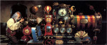 There were lots of different alchemical investigations, but the big thing everyone wanted to produce was the lapis philosophorum, the “stone of truth” or something like that. But not like a rock—more like an opal or a gem, like how all the old sutras refer to the teachings of the Buddha as a jewel. That’s what the lapis is, the “jewel” of ultimate knowledge—namely, how to be like God, a return to the divine state pretty much every religion says existed way back at the beginning. Before we were corrupted. Immortality, I guess. Sounds like heresy, right? And it is. Which is why these guys, The Masters, worked for hundreds of years or whatever to suppress any investigation into the “sacred marriage,” which, the more I read, I imagined to be sort of like combining matter and antimatter. To keep the knowledge from falling into the wrong hands, the steps and ingredients—the recipe—for marrying the male and female principles were encoded in alchemical ciphers, like the athame and the chalice. The old Taoist sorcerers were the real masters—mixing yin and yang and all that through a process that could only be grasped, never articulated—which is why there are so many bearded sages in Chinese mythology. The famous Eight Immortals, for example, who each rode a dragon and who could transfer their power to a relic or tool that could be wielded by ordinary men and whose tiny fat statues now adorn pretty much any Chinese restaurant anywhere.