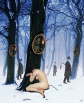 Amid the shelves of that library, I rediscovered bits of my past, including a rare manuscript by Wilm Castleby, penned in his hand. Seeing his familiar scratch brought back memories I had completely forgotten—not ones eaten by the forest but those simply lost in the years. I also discovered a collection of antique photographic plates made of glass, some of which had cracked and been mended with tape or glue. They filled a series of chests inlaid with wood grooves, each holding a single vertical plate. The Masters, or rather the librarians and scribes who worked for them in the 19th century, had used the new medium of photography to record the last of the woodfolk and the child-races, whose numbers had by then precipitously declined. Many of them had fled to other realms after the pogroms of the 17th century, but many more still had been “harvested” a century later, during the so-called Age of Enlightenment, when innumerable pieces were cut from their bodies, living or dead, and sold to fill wunderkammer and gentleman’s cabinets of curiosity. By the 19th century, precious few were left, and The Masters’ scribes made portraits, etched into glass with salts of silver. I saw twig-fingered treeherders mourning ricks of corpses, giggling gnomes hidden under furniture and machinery, preens of pixies pushed under rulers and tape measures, naked and ashamed. Some of the images were quite poignant, such as the satyr mother bent over the still body of her faun, her breasts still heavy with milk. Others were disturbing. Many of the pixies were clearly cowed by rough-gloved fingers, and their tiger-striped wings forcibly and painfully spread open. The presence of several empty slots in the chest immediately after suggested there were more such images somewhere, perhaps pornographic ones.