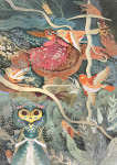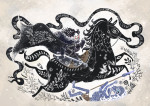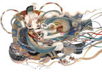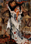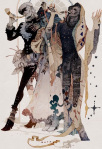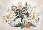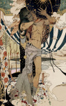 Japanese illustrator Akiya Kageichi continues the themes of sex, death, and identity as explained in Macabre and Erotic Obsessions: Contemporary Japanese Illustration. His tormented lovers, sinister jesters, and disinterested kings rule fractious fantasy underworlds that are opulent with detail.