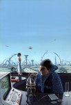 Peter Elson (1947 – 1998) was an English science fiction illustrator whose work appeared on the covers of numerous science fiction paperback novels, as well as in the Terran Trade Authority series of illustrated books. Elson, whose illustrations often placed detailed, brightly liveried spacecraft against vividly colored backgrounds, influenced an entire generation of science fiction illustrators and concept artists.