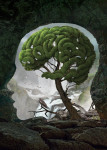 As I stepped closed to examine the hole, I realized the wall at the back of the closet had been knocked away. Another mattress lay against it, covering it from the other side. I walked over and pushed it out of the way. Beyond was another room. Long. Tall. Longer and taller than seemed possible for the building. The whole of it was dim and decaying, like the rest of the place. I stepped in. It took my eyes a few moments to adjust. At first I thought the ridges on the floor were exposed boards. But they weren’t. They were bones. Hundreds, at least. Animal bones. Not discarded. Not tossed in piles. They had been organized, like with like, in a large radiating circle. The smaller bones were near the center, the larger ones at the rim. In a gap at the center sat the skeleton of no creature that had ever existed. Bones of different species had been fixed together. It was about the size of a large dog and sat up, like a bear on the ground, facing the wall to my left. In front of it, as if carrying its gaze to the horizon, the bones of the circle were turned relative to the rest and made a kind of ray pattern. The rest of the collection made a complex labyrinth.