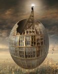 The work of Polish artist and graphic designer Igor Morski, who uses his art to comment on the state of Western society and the world, is a kind of mix of surrealist painting and editorial cartoon, with some photo manipulation thrown in for good measure. Like most Slavic artists, who seem perpetually depressed, Morski focuses on the darker side of things. His work is clever, but only occasionally insightful.