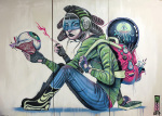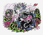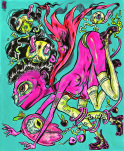 Street artist and illustrator Lauren YS creates frenetic technicolor fancies featuring strong female subjects taking flight or flaunting their sexuality or the gaze of others in fun and deliberately provocative ways. Her works are inspired by animation, mythology, literature, and her own personal narrative and have been featured in festivals around the world.