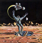 Beside his professional work, he was a frequent contributor to SF fan magazines. In his heyday he was often nominated for Hugo Awards for both professional artist and best fan artist simultaneously. Locus ran a column by him for a while.