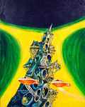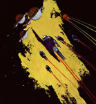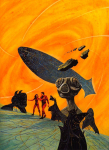 John Brian Francis “Jack” Gaughan (September 24, 1930 – July 21, 1985) was an American science fiction artist and illustrator who won the Hugo Award several times. Working primarily with Donald A. Wollheim at Ace Books, and DAW Books from 1971, his simple linear style brought to life images of such works as Andre Norton’s Witch World novels and E. E. Smith’s Lensmen and Skylark novels (for which he did two related sets of Pyramid Books covers). His broad visual vocabulary enabled him to render the objects, spaceships and scenes in whatever was presented to him as they were described in the books and stories he illustrated. That was especially an accomplishment as many of these authors drew on their knowledge of esoteric subjects for their imagery. This ability made him very popular among people with an engineering background.