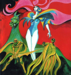 With a style somewhere between a 1930s Fleischer cartoon and the works of Salvador Dali, Chrigel Farner paints the epic landscapes of your dreams, complete with impossible geography and an army of smiling, demented characters.
