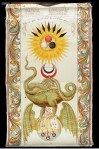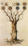 There are approximately 23 copies of the Ripley Scroll in existence. The scrolls range in size, color, and detail but are all variations on a lost 15th century original. Although they are named after George Ripley, there is no evidence that Ripley designed the scrolls himself. They are called Ripley scrolls because some of them include poetry associated with the alchemist. The scrolls’ images are symbolic references to the philosopher’s stone. [Wikipedia]