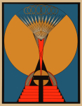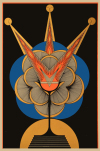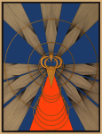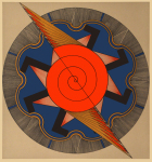 With titles like “Eternal Energy” and “The Chalice in the Heart,” it’s clear that Olga Fröbe-Kapteyn to find a kind representative archetype beyond form. Her art is precise and geometrical and her images are often reminiscent of impossible structures, like the secret form of the divine. But they are as much decorative as investigative, and many, like this first image below, clearly reveal a root in the art deco movement of the 1920s.