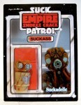 The Sucklord (born Morgan Phillips circa 1969) is a New York pop artist. He manufactures unlicensed action figures and toys through his company, Suckadelic. has been a long-time fan of Star Wars and Star Wars merchandise and has been profiled for his own versions of Star Wars collectibles. He contributed to series five and six of Topps’ Star Wars Galaxy trading cards and produced three series of his own Suckpax cards. [Wikipedia]