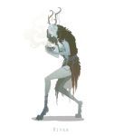 That’s when I saw the stag. It was dead. There were only bones. I had seen a cow skull before but not a whole animal skeleton. I didn’t remember ever seeing it in the hollow. I saw the rib cage first. It was propped against a tree. It looked like it had fallen sideways against the trunk as it died. There were brown leaves all around. They were everywhere. And a few patches of snow. I wondered what killed it. I could see every rib. There were so many, all lined up neat and curving together, protecting the heart that had once beat inside. But now it was empty. A kind of ghostly greenish-white moss hung from its spine into the space between the ribs.