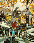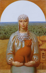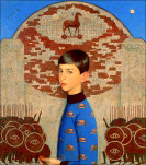 Contemporary Russian painter Andrey Remnev graduated from the Moscow Art School in 1983 and went on to study the medieval and Renaissance iconography of the Orthodox Church. His works blend classical Russian culture with scenes from peasant and contemporary life reflecting a variety of themes, including music, beauty, politics, religion, and the persistence of history.