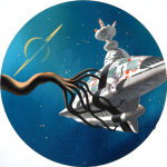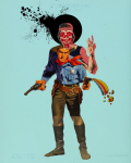 Matt Cunningham, who goes by the moniker Moon Patrol, creates fantastically trippy retro collages from or inspired by old comics, pulp art, and vintage ads: cowboys, robots, phantoms, aliens, dinosaurs, and monsters. You can find the artist on his website.