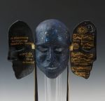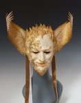 “I began making masks in early 2007, exploring the traditional techniques and materials used by the Italians. These wearable paper mache masks start with a “face” sculpted in terra cotta that is used to create a plaster cast. The cast becomes the form for the paper mache.”