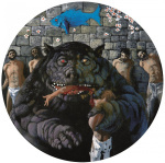 So much fantastic detail, such as how Lucretia, the pope’s illegitimate daughter, seems to float on an ocean of blood, infidels are in attendance at the back, the men in front seem almost bored while one fellow on the side covers his face in horror as the friar, who resembled the pet monkey next to him, is made to kiss her feet, as presented to him by a pair of nobles.