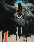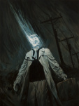 As my irises adjusted to the dark, I caught the symbol spray-painted on the far wall. It commanded your attention immediately, like a crucifix above an altar. But it wasn’t a crucifix. It was an uneven circle with a shape inside, sort of like a tilted ax with an ankh for a handle. The paint glowed a faint yellow-green in the dark. On the floor below were five motionless figures: two women, a man, and what looked like a pair of kids—all Asian, aged 12 to 60, roughly. Easy enough to peg as undocumented. Their teeth were bad, they were malnourished, and they each wore an odd mix of castoff clothing. That at least explained the secrecy. I guessed someone in the mayor’s office wanted a chance to craft the message before the media did. A crop of dead illegals might even make national coverage.