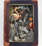 “I make book sculptures by working through a book, page by page, cutting around some of the illustrations while removing others. In this way, I build my composition using only the images found in the book.