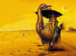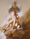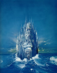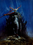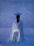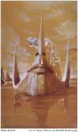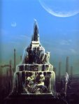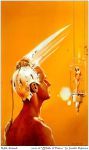 Siudmak’s style is comfortably in the “sci-fi surrealist” tradition, similar to the Dutch painter Karel Thole. His fantastic, otherworldly, often godlike subjects stand on broad planes or other expanses which give his covers a sense of depth and space appropriate to the subject matter.